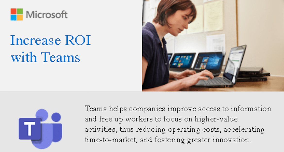 Microsoft Teams helps you improve access to information, save time, empower your workers, and drive financial success. To learn more about how Teams can increase your ROI, check out this infographic: