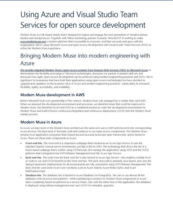 Do you currently use AWS with open-source solutions? Well, the good news is, you have another option. With the right tools, you can shift your infrastructure over to another cloud platform with increased scalability and flexibility. Microsoft recently migrated Modern Muse’s open-source systems from Amazon Web Services (AWS) to Microsoft Azure to demonstrate the flexibility and range of their technologies.