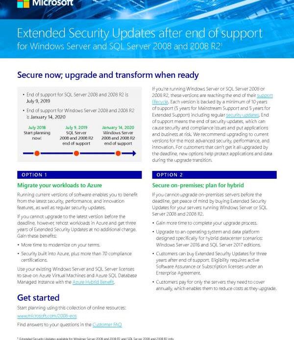 Extended Security Updates after end of support for Windows Server 2008 and SQL Server 2008 and 2008 R2