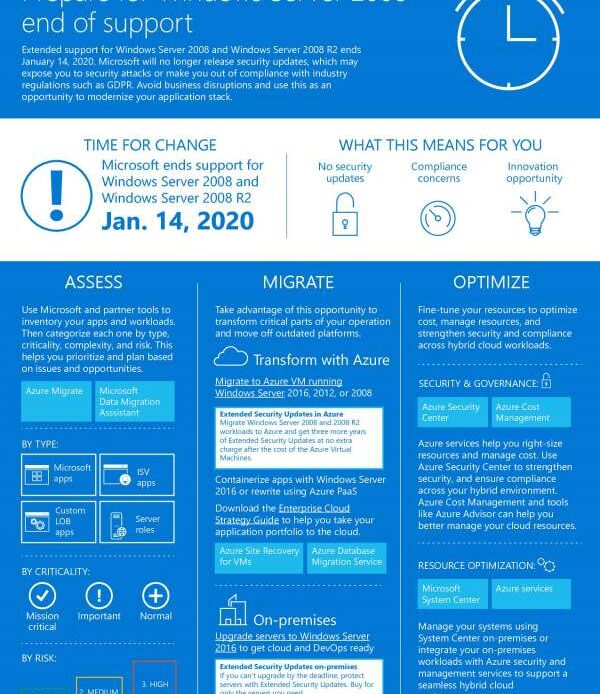 The Windows Server 2008 end of support is fast approaching, Microsoft won’t be releasing the security updates that keep you safe. It’s the end of an era. But it has created an opportunity for users of Windows Server 2008 and Windows Server 2008 SQL to shift to Windows Server on Azure. If you’ve been putting off your transition, you may find it helpful to have the guidance of experienced professionals. At Logic Networks, we have years of experience helping firms like yours to shift their data across solutions and platforms. Contact us today to find out how we can help make your journey easier.