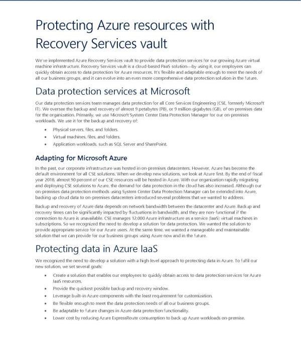 With file and folder backup and recovery, virtual machine backup and recovery, and SQL running on IaaS VMs, Azure Recovery Services vault gives users a strong feature set and an easy-to-use data protection service for businesses to protect their data.